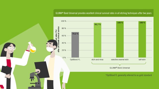 A clinical study from the University of Leipzig reveals: after two years of clinical service, restorations using GLUMA Bond Universal in all etching modes showed higher clinical survival compared to the 3-step etch-and-rinse control group. Read the complete study here:
